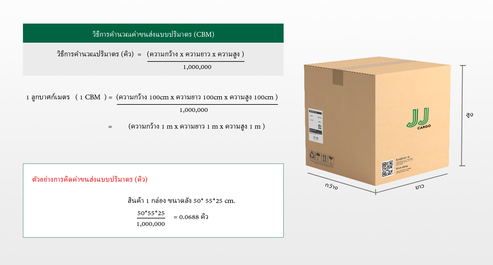 ในการคำนวณค่าขนส่งการ สั่งสินค้าจากจีนจะใช้เกณฑ์ Logistics สากล ในการคำนวณว่าจะใช้หน่วยวัดเป็นน้ำหนักหรือปริมาตร